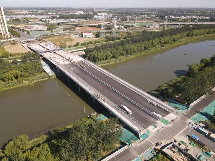 奧體中路跨小清河橋梁工程跨越南水北調(diào)明渠及小清河河道,橋梁全長(zhǎng)349m,橋面寬50m,于2021年4月15日開(kāi)工建設(shè),是奧體中路北延的重要組成部分,建成后將主城區(qū)和華山片區(qū),濟(jì)樂(lè)高速與市區(qū)快速連通,是構(gòu)成濟(jì)南市東部重要的南北向交通通道。