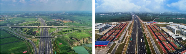 改擴(kuò)建項(xiàng)目堅(jiān)持問題導(dǎo)向、創(chuàng)先導(dǎo)向,立足項(xiàng)目實(shí)際,總結(jié)五大工程特難點(diǎn),突出“綠色”和“科技”主題,圍繞全壽命周期設(shè)計(jì)施工一體化技術(shù)、不間斷交通的施工交通組織與安全保障提升技術(shù)、舊路材料與大宗工業(yè)廢棄物循環(huán)利用技術(shù)、生態(tài)防護(hù)與節(jié)能減排技術(shù)、信息化建管養(yǎng)效率提升技術(shù)等五大科技專項(xiàng),開展了29個(gè)科技子項(xiàng)的科技攻關(guān)及推廣工作。打造了全國首條高速公路改擴(kuò)建綠色科技示范工程,解決了新舊路基差異沉降問題,化解了山東重化污染頑疾,打造了世界第一條“赤泥”路,以“零廢棄”為目標(biāo),國內(nèi)首次實(shí)現(xiàn)路面銑刨料、廢棄混凝土100%再利用、舊護(hù)欄60%再利用,全線瀝青路面采用單機(jī)18.75米全幅攤鋪,創(chuàng)造了同類工程領(lǐng)域的世界紀(jì)錄,取得顯著的經(jīng)濟(jì)效益。此外,項(xiàng)目成功打造出國內(nèi)首個(gè)實(shí)現(xiàn)自我中和的“零碳服務(wù)區(qū)”,國內(nèi)首次嘗試不中斷交通下的雙向四車道保通,既有橋梁利用率高,實(shí)現(xiàn)既有結(jié)構(gòu)物最大化利用,智慧化建設(shè)成果顯著,實(shí)現(xiàn)道路運(yùn)營信息化、數(shù)字化以及智慧運(yùn)營、智慧決策、智慧服務(wù)。