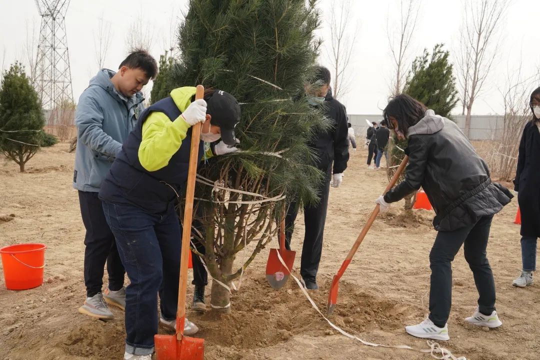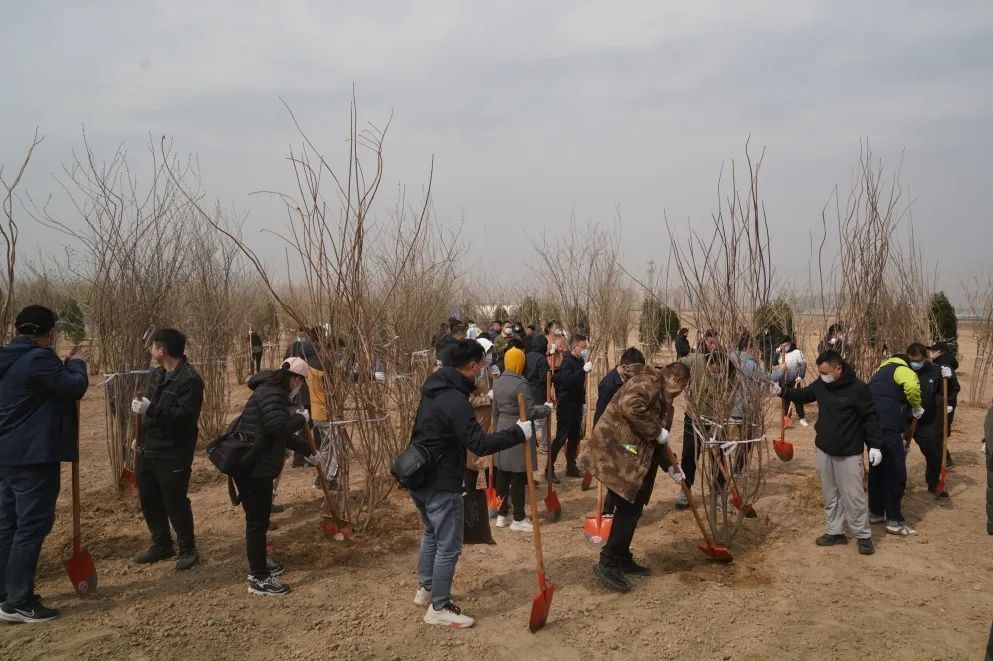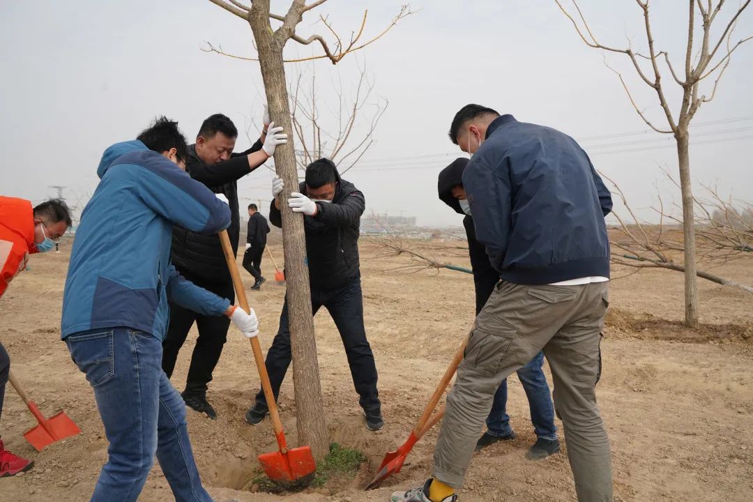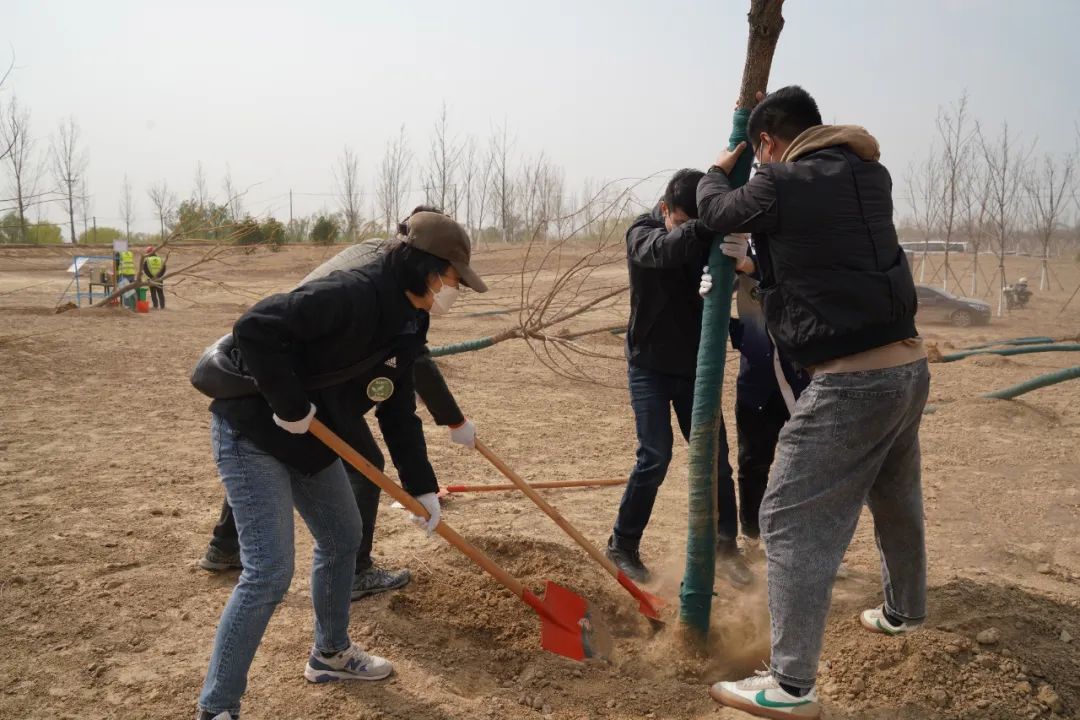 植樹活動中,大家在工作人員的指引下,密切合作、分工配合,在樹木種植范圍內(nèi),深挖基礎(chǔ),厚培春壤,種下數(shù)百棵樹苗,為泉城濟南增添新綠。