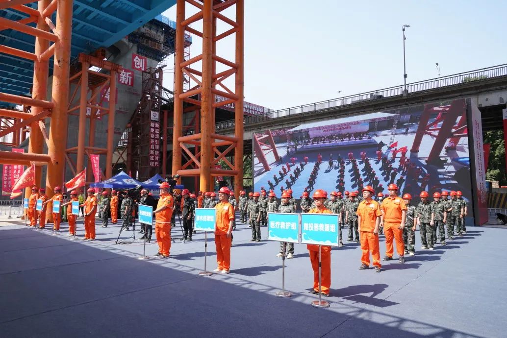 為全面貫徹落實(shí)黨的二十大精神和習(xí)近平總書記關(guān)于安全生產(chǎn)的重要指示要求,認(rèn)真落實(shí)省、市安全生產(chǎn)工作視頻會(huì)議精神,進(jìn)一步完善防汛應(yīng)急預(yù)案,提高防汛搶險(xiǎn)應(yīng)急處置能力,5月12日,建設(shè)集團(tuán)在濟(jì)南黃河公路大橋擴(kuò)建工程現(xiàn)場(chǎng)開展“凝心聚力謀發(fā)展 統(tǒng)籌兼顧保安全” 2023年度防汛應(yīng)急演練。山東省應(yīng)急廳防汛抗旱處副處長(zhǎng)王震,市應(yīng)急局防汛抗旱處副處長(zhǎng)楊志斌,市國(guó)資委信訪處副處長(zhǎng)、二級(jí)調(diào)研員周琳琳,濟(jì)南黃河河務(wù)局水政處處長(zhǎng)尹訓(xùn)海,天橋黃河河務(wù)局防辦主任張遠(yuǎn)博,建設(shè)集團(tuán)總經(jīng)理助理、安全總監(jiān)解漢忠出席活動(dòng),集團(tuán)各部室及子公司主要負(fù)責(zé)人參加活動(dòng)。