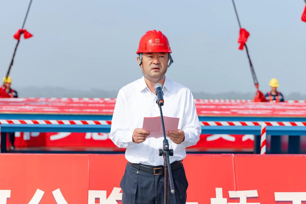 建設(shè)集團(tuán)黨委書(shū)記、董事長(zhǎng)史海成宣布G104京嵐線(xiàn)濟(jì)南黃河公路大橋主橋合龍。