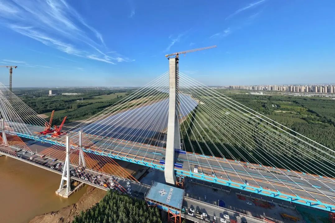 G104京嵐線(xiàn)濟(jì)南黃河公路大橋工程是連接濟(jì)南新舊動(dòng)能轉(zhuǎn)換起步區(qū)與老城區(qū)的南北向主干道,是濟(jì)南市“四橋四隧”規(guī)劃建設(shè)的重要組成部分,對(duì)助推濟(jì)南加速邁向黃河時(shí)代、促進(jìn)起步區(qū)經(jīng)濟(jì)社會(huì)發(fā)展具有重要意義。項(xiàng)目采用雙塔雙索面公軌合建鋼桁梁斜拉橋形式建造,全長(zhǎng)7.748公里,主線(xiàn)橋梁工程長(zhǎng)6.87公里,建設(shè)工期48個(gè)月,計(jì)劃2025年6月底通車(chē)。