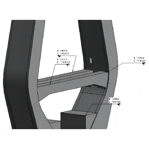 由BIM模型提取的工程任意定位點(diǎn)的精確坐標(biāo)和高程,大大提高了定位放樣以及復(fù)核測量的效率和準(zhǔn)確性,減少測量的內(nèi)業(yè)計(jì)算工作,施工測量所需內(nèi)業(yè)人員減少30%-50%。