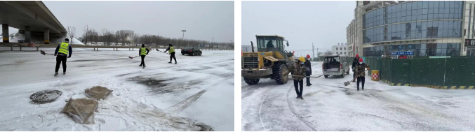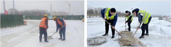 各項目在接到降雪預(yù)報后,按照要求提前做好各項清雪除冰準(zhǔn)備工作,并安排人員在崗值守,密切關(guān)注雪情路況,第一時間撒布融雪劑、鏟雪、除冰,機械作業(yè)與人工作業(yè)交替進行,對重點路段進行鏟、推、掃、堆一體化循環(huán)作業(yè),加快清理道路積雪,為來往行人車輛清理出安全整潔的通道,為市民群眾平安出行保駕護航。