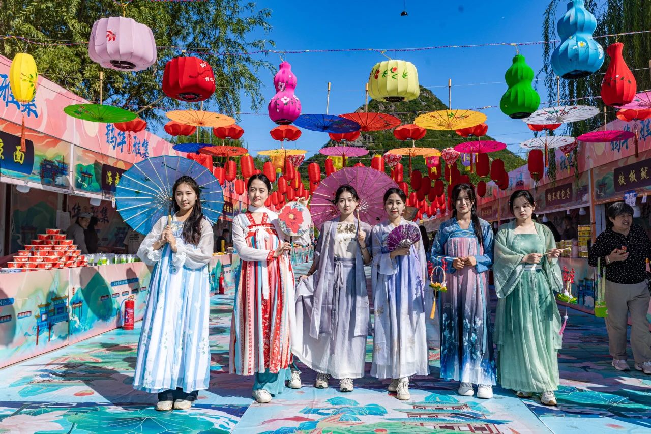 10月1日,濟南華山風(fēng)景區(qū)古風(fēng)市集——鵲華雅集開市,70多家市集商戶還原古代市集繁榮市貌,現(xiàn)場歌舞不斷、琴聲悠揚。