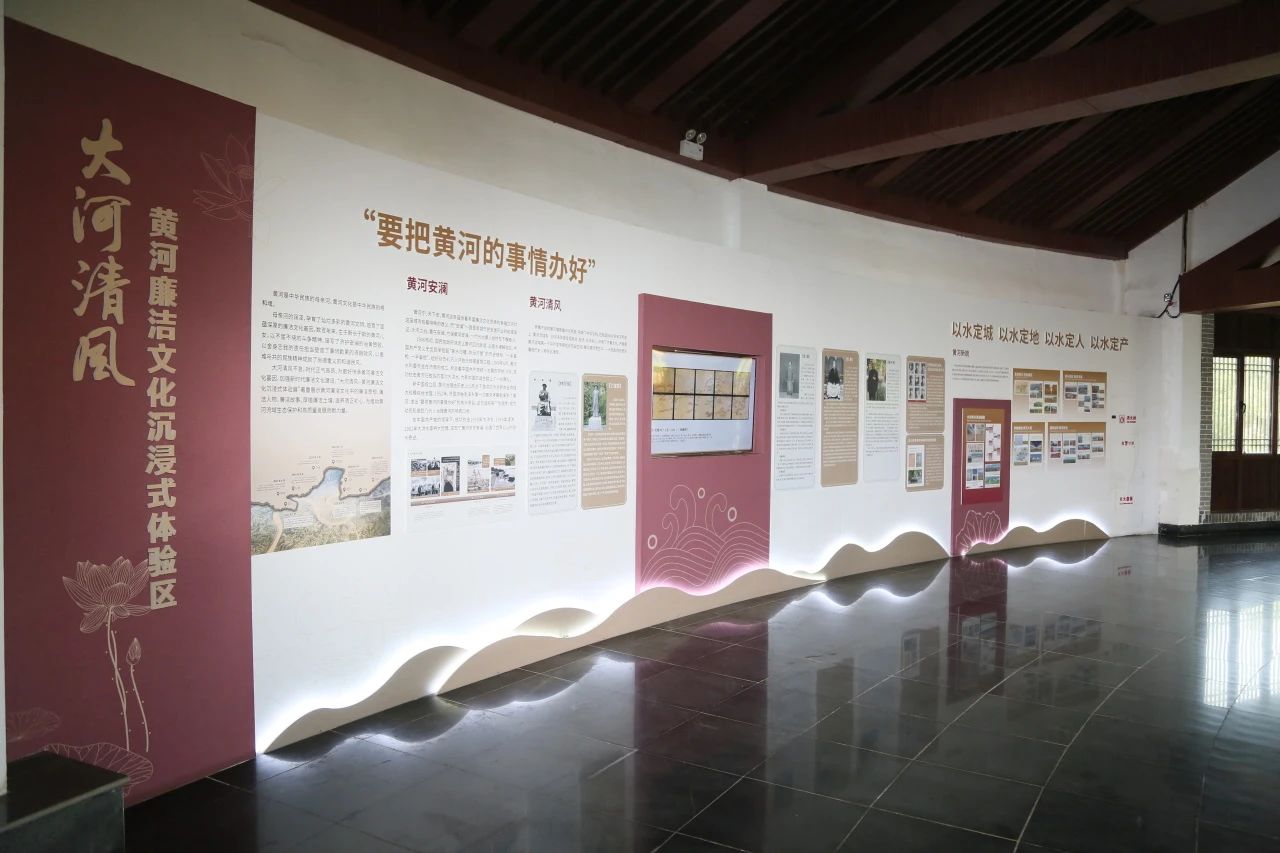 在濟西濕地突出“黃河”文化特色,打造“大河清風(fēng)——黃河廉潔文化沉浸式體驗展區(qū)”,觀、聽、品、感、悟五感感受大河清風(fēng)。