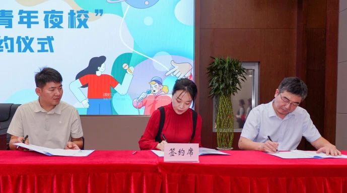 許洪波、任立先為建設(shè)集團(tuán)青年之家揭牌;團(tuán)市委組織部相關(guān)負(fù)責(zé)同志、建設(shè)資產(chǎn)公司負(fù)責(zé)同志、青年夜校建設(shè)集團(tuán)校區(qū)負(fù)責(zé)同志共同簽訂《濟(jì)南團(tuán)市委“青年之家·青年夜校”項(xiàng)目運(yùn)營協(xié)議》;與會領(lǐng)導(dǎo)為“青年之家·青年夜校”6名授課教師代表發(fā)放聘書。