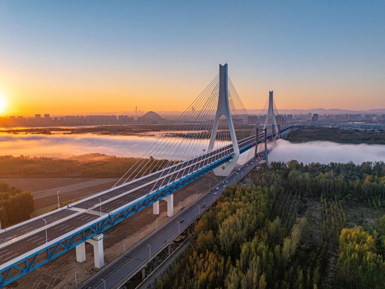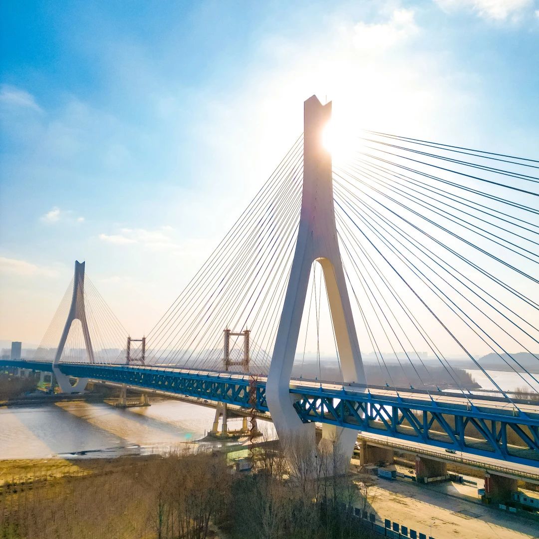 1982年7月,濟(jì)南黃河大橋(老橋)建成通車,作為當(dāng)時亞洲跨徑最大的公路斜拉橋,入選濟(jì)南“1978—1988泉城十大景觀”。如今,新橋與老橋“并肩”相望,成為黃河上第一座不等跨并橋建設(shè)工程,也是黃河上跨徑最大、鋼橋總長最長的公軌分層合建橋梁,刷新“跨黃”橋梁紀(jì)錄。