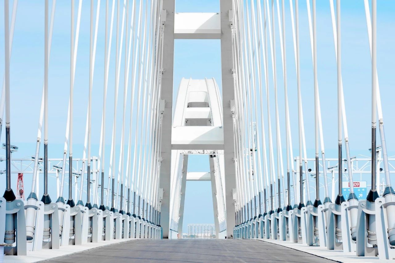 大橋橋塔整體造型源于“水滴”曲線線條,剛?cè)嵯酀?jì),輕盈通透,使橋梁與環(huán)境更有效的融合,也寓意著水文化對于濟(jì)南這座城市的特殊意義,象牙白橋塔搭配水藍(lán)色鋼桁梁,則與泉水遙相呼應(yīng)相得益彰。