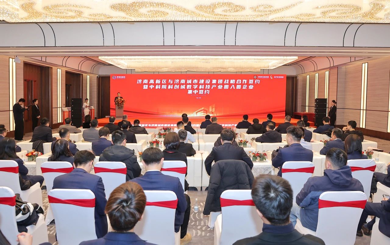 12月25日,濟南高新區(qū)與濟南城市建設(shè)集團舉行戰(zhàn)略合作簽約暨中科院科創(chuàng)城數(shù)字科技產(chǎn)業(yè)園入園企業(yè)集中簽約活動。濟南市副市長,高新區(qū)黨工委副書記、管委會常務(wù)副主任任廣鋒出席活動并見證簽約。市科技局黨組書記、局長黃波,濟南高新區(qū)管委會副主任、濟高科創(chuàng)投資集團董事長兼總經(jīng)理劉松,濟南城市建設(shè)集團黨委副書記、總經(jīng)理楊峰,建設(shè)集團副總經(jīng)理徐文東參加活動。