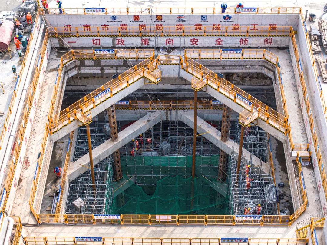 作為國內(nèi)水下最大直徑的盾構(gòu)隧道的濟南市黃崗路穿黃隧道工程,目前正在開展北岸始發(fā)井、南岸接收井及機架段的開挖支護和結(jié)構(gòu)工程的施工。其中北岸始發(fā)井主體結(jié)構(gòu)施工,已完成70%,預(yù)計2024年5月份能完成頂板封頂工作;南岸接收井及明挖段圍護結(jié)構(gòu)已施工完成,正在進行土方開挖及主體結(jié)構(gòu)施工,預(yù)計2024年底能夠完成全部主體結(jié)構(gòu)施工。同時,盾構(gòu)機預(yù)計2024年5月份能夠下線、進場組裝,計劃年內(nèi)進行盾構(gòu)始發(fā)。