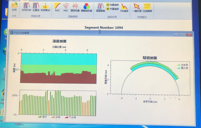 將彈性波智能檢測系統(tǒng)安裝在盾構(gòu)機上,每環(huán)掘進工序完成后開啟檢測設備,項目技術人員通過掃描管片獲得壁后注漿效果圖,分析彈性波波形判斷注漿密實度,根據(jù)注漿密實度對注漿工序?qū)崟r做出調(diào)整。