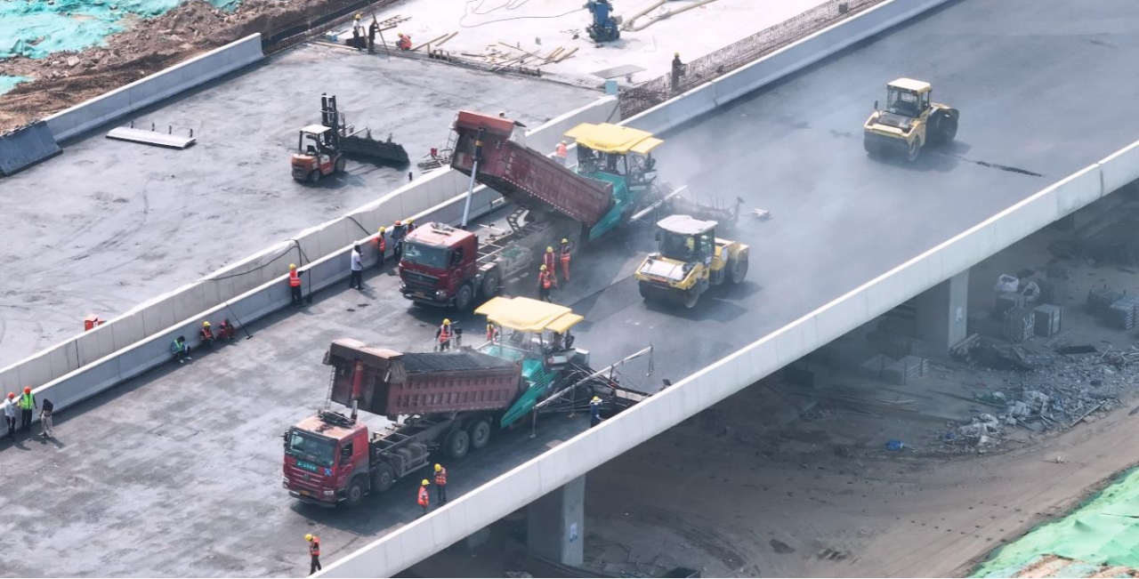 主進(jìn)場路工程涉及單位多、施工組織難、工期要求緊。全體參建人員牢固樹立“樹精品、保安全、促飽和”的建設(shè)理念,全力克服工程導(dǎo)改復(fù)雜、作業(yè)面受限、不停航施工、交叉作業(yè)等困難,科學(xué)制定技術(shù)處理方案,壓茬謀劃作業(yè)時(shí)序,統(tǒng)籌推進(jìn)機(jī)場運(yùn)行、拆遷導(dǎo)改、交通通行、高鐵建設(shè)與主進(jìn)場路建設(shè)。
