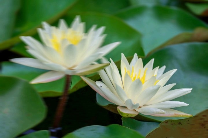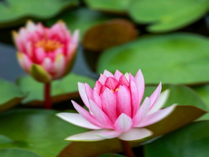 秋風(fēng)起時(shí),睡蓮輕展笑顏,與夏荷遺韻共舞,清麗脫俗,宛如睡夢中的仙子,喚醒秋的柔情與雅致。