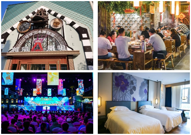 同時(shí),印象濟(jì)南·泉世界通過(guò)展示商埠文化的“潮范東樓”、市井坊間文化的“格調(diào)西坊”以及鄉(xiāng)土記憶的“風(fēng)情北苑”形成“品”字型景觀布局,推動(dòng)整個(gè)街區(qū)的文化與旅游融合發(fā)展。另外,街區(qū)與山東國(guó)際會(huì)展中心處西部大商圈內(nèi),街區(qū)內(nèi)的餐飲與住宿商戶在濟(jì)南西部會(huì)展業(yè)的提檔升級(jí)方面起到直接推動(dòng)作用,方便了創(chuàng)業(yè)者的業(yè)務(wù)洽談,尋找創(chuàng)業(yè)新機(jī)遇。