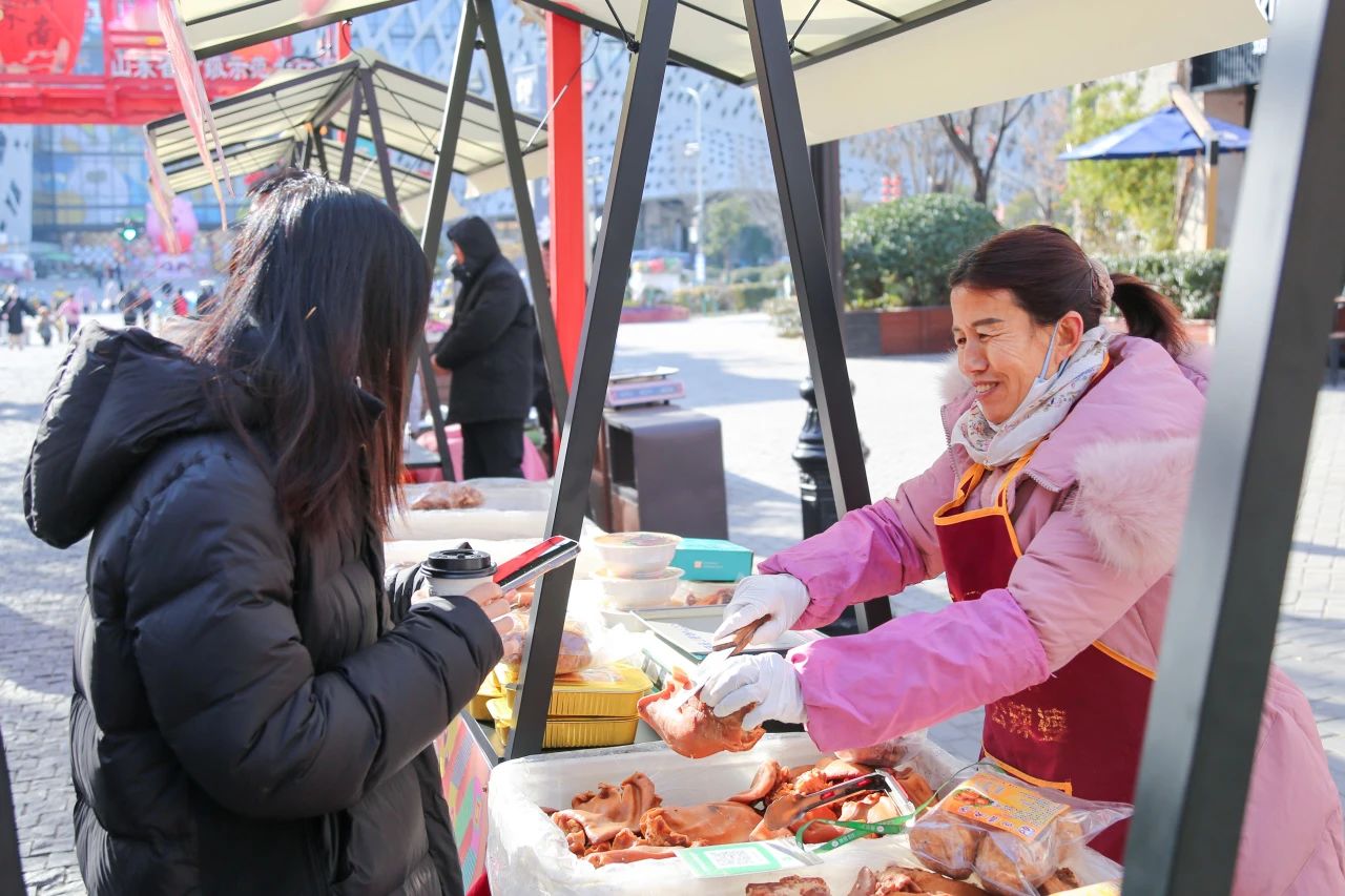本次活動現(xiàn)場設(shè)置展位40余個,商河縣、槐蔭區(qū)興福街道、鋼城區(qū)顏莊街道及建設(shè)集團(tuán)共40余位駐村“第一書記”為市民游客帶來了百余種特色農(nóng)副產(chǎn)品。其中,商河大酥梨、玉皇廟豆腐皮、玉皇廟核桃酥、七彩野雞蛋、古梨醋飲、梨膏糖、臘八蒜、香酥煎餅、芝麻香油、泉水粉皮等優(yōu)質(zhì)農(nóng)特產(chǎn)品“出村進(jìn)城”,與廣大游客朋友見面,全方位展示了當(dāng)?shù)刎S富的農(nóng)業(yè)資源和獨特的農(nóng)副產(chǎn)品,有力推動農(nóng)業(yè)與文化旅游的深度融合,為鄉(xiāng)村振興注入新的活力。