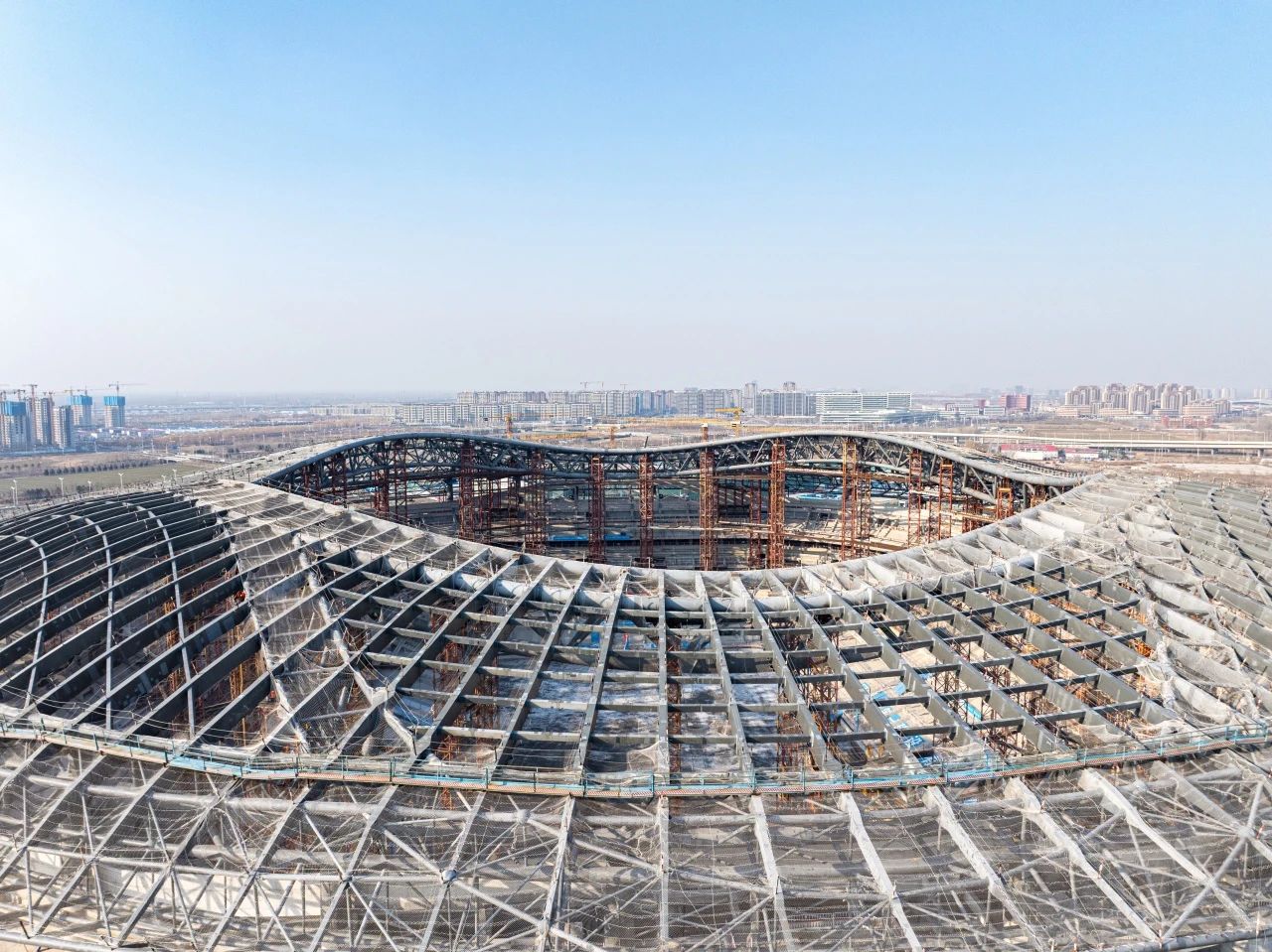 近日,由濟(jì)南城市建設(shè)集團(tuán)受委托建設(shè)的濟(jì)南黃河體育中心足球場(chǎng)項(xiàng)目屋蓋鋼結(jié)構(gòu)支撐體系卸載工作完成,項(xiàng)目全面完成鋼結(jié)構(gòu)施工,下一步將進(jìn)入索膜結(jié)構(gòu)、幕墻和金屬屋面施工階段。按照施工安排,該項(xiàng)目預(yù)計(jì)2026年12月達(dá)到竣工驗(yàn)收條件。